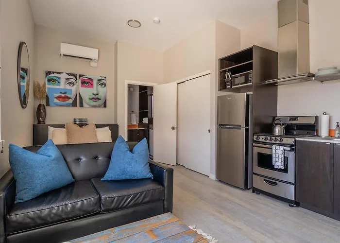 Enhance your stay with the apartment's an equipped kitchenette, furnished with a fridge, an oven, and kitchenware for your comfort. Guests can easily reach Stay Portland - Sleek Studio - Food Cart Row & Vintage Shops from Portland International airport, which is 5 km away.